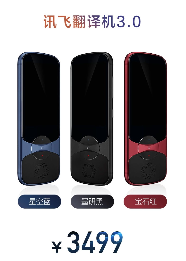 5月21日,科大讯飞召开2019新品发布,会上发布了翻译机新品讯飞翻译机3.0,售价3499元。
