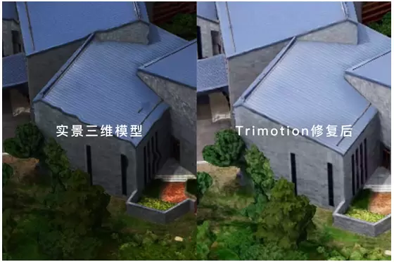 实景三维建模的精修,也是数据生产过程中不可或缺的环节。由于在采集环节受制于拍摄条件和环境的实时变化所造成的干扰,三维建模的生产结果中出现建模扭曲、空洞、不完整的情况在所难免;因而数据在被投入二次开发和正式应用以前,往往需要大量人力对数据的统一检查和修复。基于AI,Trimotion可以做到对异常建模的发现和诊断,并能集中对有问题的数据自动化修复。目前,这种自动化的三维建模数据修复能力意在辅助提高人力精修的效率,在一定程度上减少工作量;从长远来看,自动化修复将以数据精修为目标,取代传统的人工修复方式。