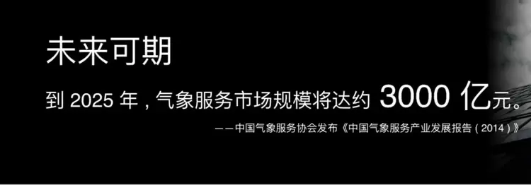 如今,气象服务正在从政府级、民用级快速发展到个体级、企业级,气象商业价值逐渐彰显。不过,与欧美日等国相比,我们气象产业的发展明显处于起步阶段,是一片蓝海产业。据《中国气象服务产业发展报告》显示,到 2025 年,我国气象产业规模可达 3000 亿元。未来可期!