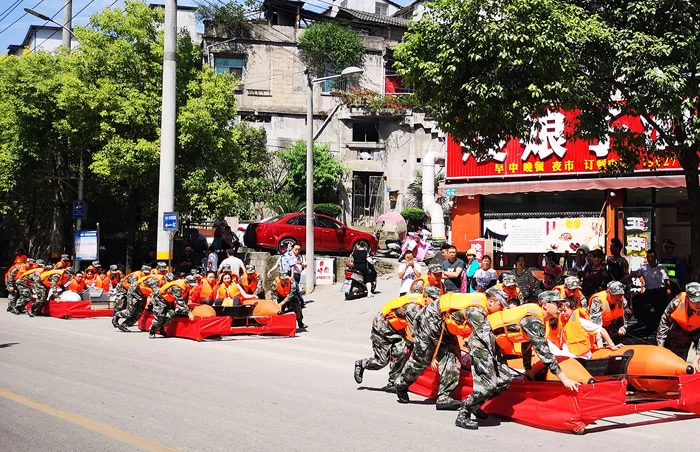 在荆门市沙洋县新港码头,湖北移动在当地经信局的指导下,实景模拟了江水漫过城市路面造成基站退服的情景。“水灾封堵基站,请求支援发电……”接到应急指令后,通信保障人员及车辆、物资迅速集结、发动,合力完成了应急指挥通信保障调度、应急光缆熔接抢修、应急直放站开通、应急油机的发电调度和机房沙包封堵等救援工作,在最短的时间内恢复了通信畅通。