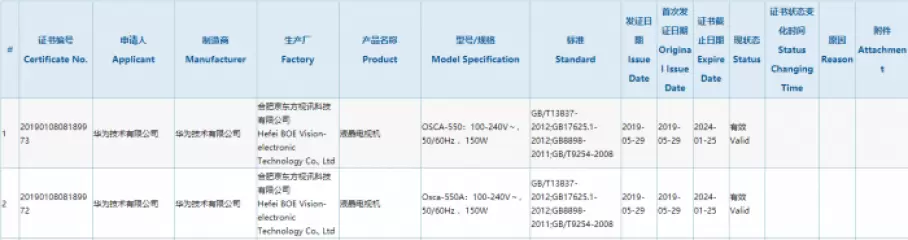 从华为消费者BG获悉,刚刚于5月29日获得3C认证的华为夜景电视,将于今年9月或10月上市。昨日,国家3C质量认证中心相关页面显示,型号为OSCA-550(或为55英寸)的液晶电视产品已于5月29日获得认证,申请人为华为技术有限公司,生产厂为合肥京东方视讯科技有限公司。