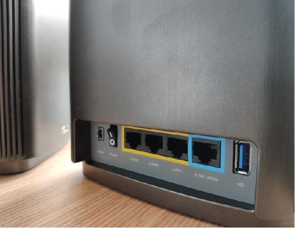 本次华硕发布的ASUS RT-AX95Q支持有线和无线回程。配置3个千兆LAN口,1个2.5G WAN口,还有1个USB3.0端口,端口间用颜色标识。