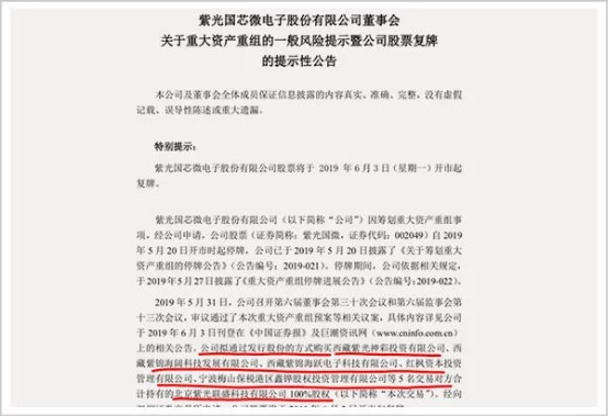 笔者查了一下新闻,紫光集团是在2013年12月底完成了对展讯的收购,这是紫光集团进入芯片行业的首战,到现在还不满六个整年。短短六年时间,在掌门人赵伟国的带领下,紫光集团以排山倒海之势和令人眼花缭乱的手法,迅速崛起为具有国际影响力的中国芯片超级巨头,其战略布局眼光、产业整合能力、资本运作能力,令人叹为观止。如果本次紫光国微重大资产重组顺利进行,加上紫光旗下新华三集团宣布将成立新华三半导体有限公司,紫光集团将拥有四艘千亿级芯片航母,分别是紫光展锐、长江存储、新华三集团和紫光国微。