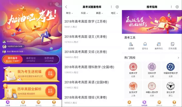 今年高考报名人数超过1000万,创十年来最高记录,这1000万考生的背后是1000万个家庭,是数亿人的关心和讨论。此次百度将从备考、考试估分和志愿填报三个阶段为考生及家长提供全方位服务。备考阶段,百度为考生提供了历年真题及解析,今年更新增了“我为考生送祝福”活动,联合易烊千玺等数十位偶像明星为考生送出美好祝福;高考期间,来自全国各地上百位高考名师将齐聚百度,现场校对并上传正确答案,在百度APP高考智能小程序中为考生提供准确的估分服务;高考成绩公布后,百度高考智能小程序还为考生提供智能志愿填报服务。据悉“高考加油”智能小程序的大数据图谱覆盖了全国2631所统招学校、1310个教育部公布标准专业,此外,还有高校专场、专业专场和考后专场三大类超过57场专家直播,辅导考生科学填报志愿。