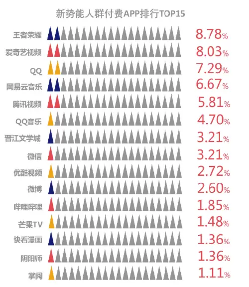 同时,网易云音乐在新势能人群付费APP排行榜中位居音乐类第一、总榜第四,前三为王者荣耀、爱奇艺和QQ。这意味着网易云音乐聚集了大量愿为兴趣买单的高消费力人群。