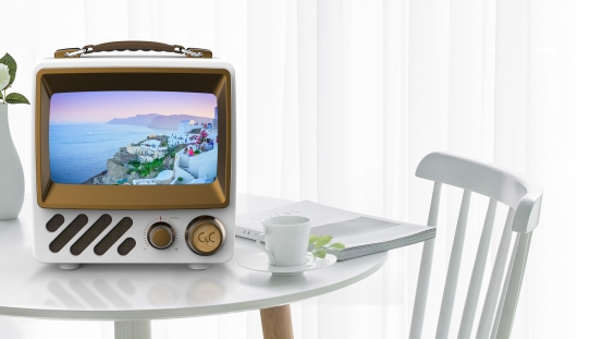 复古皮质包装,民国风老式铜扣,上个世纪的经典在外包装上隐约可见。铝镁合金机身设计可媲美航空飞机,高贵的质感扑面而来;简约大气的木板背纹设计,让这台小小的坐式电视不管放在房间的哪个地方,都将提升房间的品质。独特的复古电视造型、旋钮交互设计,经典信号图和雪花开机界面,年代感十足,在凸显复古美学的同时,让人回忆起儿时老爷爷坐在电视机前换台的情景,关于儿时的温暖记忆被重新唤起。
