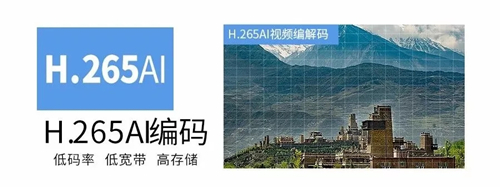 在H.265编码的基础上增加了人工智能技术,对视频内容进行分析,对噪声等干扰,编码器不分配带宽,对真实的目标带宽分配权重加大,使得视频带宽的分配更加合理,有效降低码流。