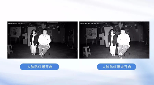 智能人脸亮度自动识别,快速收光,防止人脸过曝问题,杜绝人脸发白。保证画面内的人脸都能被清晰识别,完美的解决了夜视人脸过曝的问题。