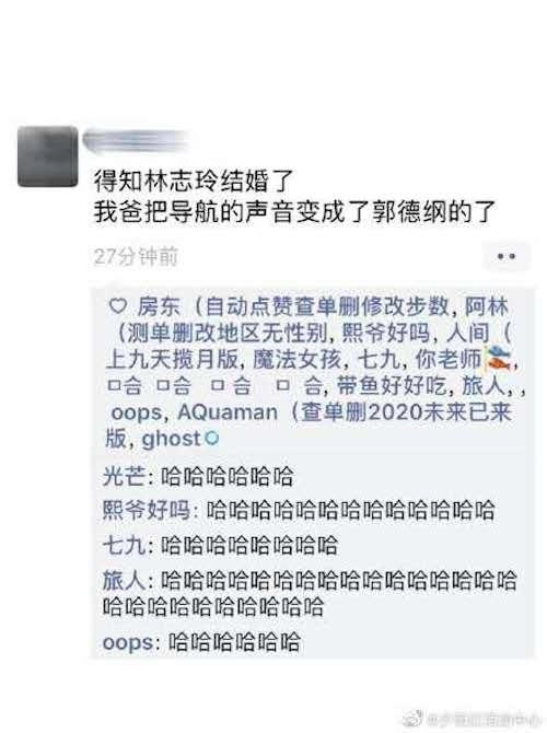 甚至有网友称,“得知林志玲结婚了,我爸把导航语音换成郭德纲的了。”