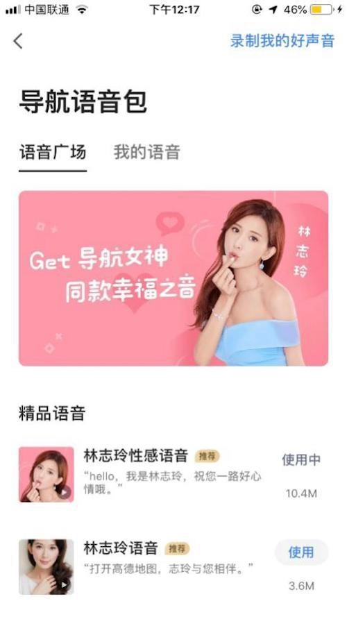 当然,还有更多林志玲的粉丝用下载林志玲语音包的方式对偶像表示支持,“get导航女神同款幸福之音”。
