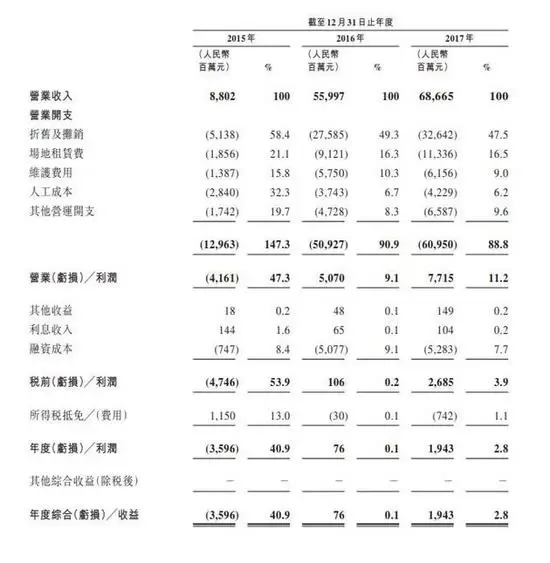据招股书显示,中国铁塔2017年营收686.65亿元,税前利润26.85亿元;2016年营收559.97亿元,税前利润1.06亿元;2015年营收88.02亿元,税前利润为-47.46亿元。