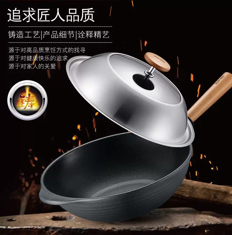 这款苏泊尔匠铸系列的无油烟炒锅,好评如潮,匠心之道,精艺铸造,追求匠人品质,源于对高品质烹饪方法的找寻和对健康快乐的追求,以及对家人的关爱,一体成型,导热均匀,烹饪少油烟,特殊不粘图层,8层保护,层层加固更耐磨,易清洗,防刮耐磨,耐磨环不沾技术,价高不锈钢玻璃盖,造型时尚,加固耐用防滑,原生态木质手柄,握感舒适,微弧成型,聚油烹饪,明火专用,参加满减,活动力度超大,原价499元,国美价仅需369元!