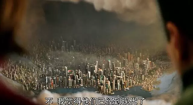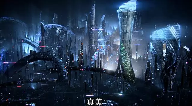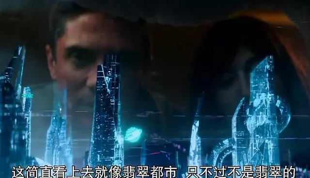 当两个人休息了一会,再打开冰箱,看到了大战之后修复的地球城市,非常科技感蓝色之城。