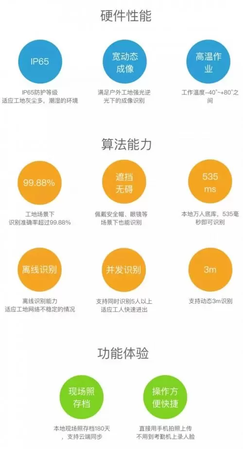 记者还了解到,云识客最让人满意的是将AI技术深入的融合到了实际场景中。在硬件性能、算法能力、功能体验等方面,均针对工地实际场景,从下图中,我们也能透彻的了解云识客的每一项能力。
