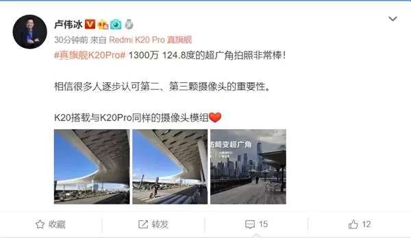 同时,其晒出了近期红米真旗舰K20 Pro的超广角拍摄样张,展示了其超广角副摄的水平。