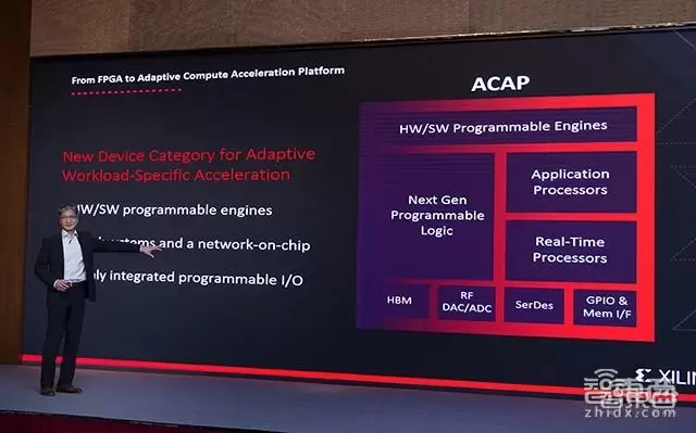 赛灵思即将上线的大杀器叫Versal,这是业界首款自适应计算加速平台(Adaptive Compute Acceleration Platform ,ACAP),采用台积电7nm工艺,集成了AI和DSP引擎,其软硬件均可由开发者进行编程和优化。