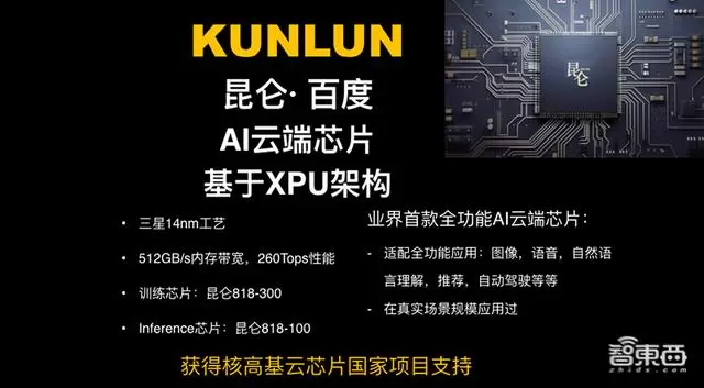 随后在2018年7月举办的百度AI开发者大会上,百度宣布当时业内的算力最高的AI芯片——昆仑。
