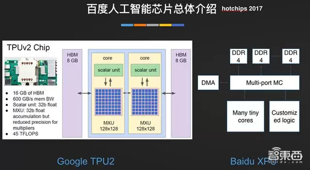 2017年8月,百度发布了一款256核、基于FPGA的XPU芯片,这款是和赛灵思合作的,核心很小,没有缓存或操作系统,效率与CPU相当。