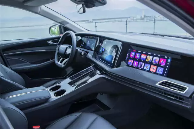 天际ME7结合多项科技,实现车内5屏互动,还可以与用户的手机、Pad等智能设备完成通讯连接,交流与分享。仪表和中控屏之间可以实现导航信息、车辆设置信息和播放信息的分享,中控屏和副驾屏之间可以实现智能导航、多媒体,前排中控屏和副驾屏和后排娱乐屏之间可以实现智能导航和多媒体的分享。通过用户在屏上进行抓取,即可识别用户的分享意图,引导用户进行分享操作。