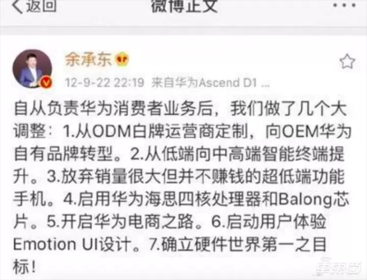 9月,负责华为消费者业务的余承东定下七条重要的调整战略,其中就包括“启用华为海思四核处理器和巴龙芯片”。
