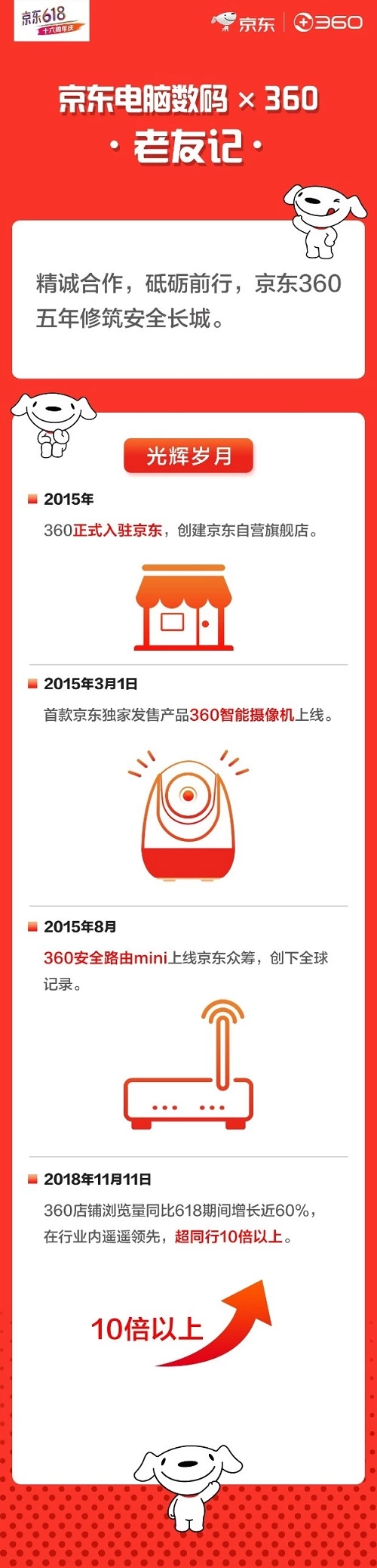 自2015年正式入驻京东以来,360整体销售业绩和品牌流量也在逐年递增。2018年11月11日,360店铺浏览量同比618期间增长近60%,在行业内遥遥领先,超同行10倍以上。