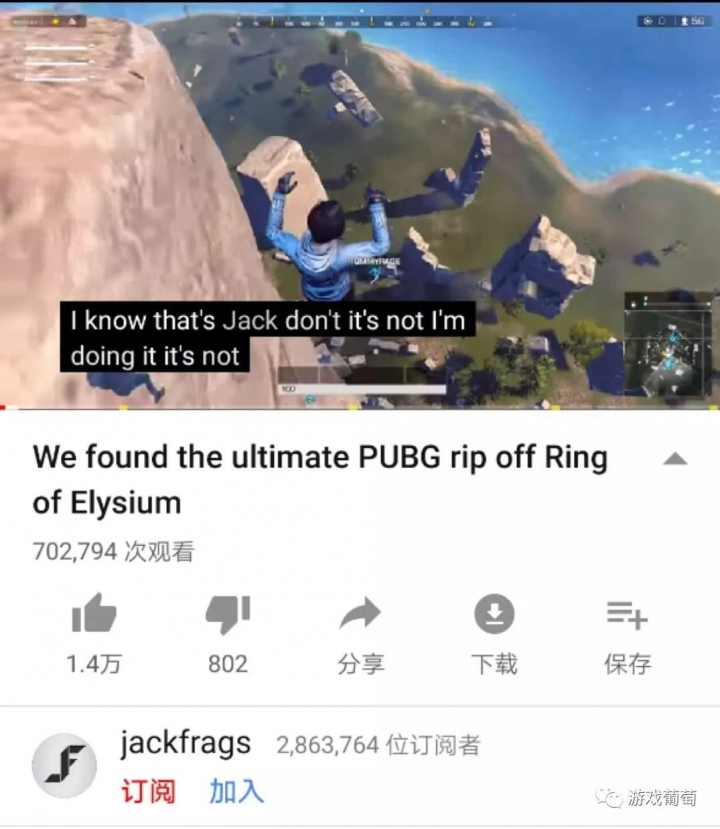 新的版本上线后,JackFrags又在Youtube上上传了一则视频,这回的视频的主题叫做“Ring of Elysium is good now”,即“现在《无限法则》还不错”,这个视频的赞踩比达到了近30:1。