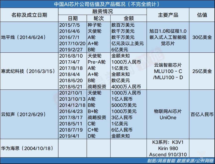 2015年左右地平线和云知声开始大量投入兵力,寒武纪虽创立最晚,但原始积累已早早在中科院计算所完成。