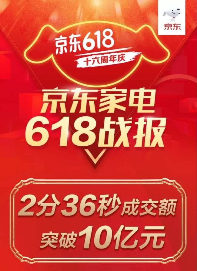 2分36秒破10亿大关 京东家电全品类共创618新纪录!