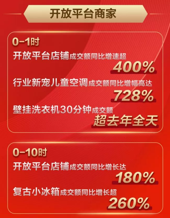 不仅京东家电自营商品实现了大卖,开放平台店铺同样集体爆发,18日0时-10时成交规模同比增长达180%!其中最受消费者追捧的复古小冰箱成交额同比增长更是超过260%!