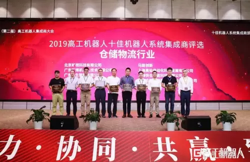 旷视(右三)被评为2019高工机器人“十佳机器人系统集成商”