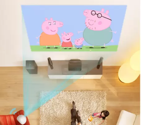 再次,手机、投影还能通过蓝牙互联共享,实现同屏传输,而且在投屏的同时还能正常使用手机的其他功能。云宝采用了蓝光漫反射成像技术,投射光线经漫反射进入人眼不容易产生眼部疲劳,画质可以达到1080P,亮度可以根据光线进行自动梯形校正。其投影功能可以延伸覆盖到所有的家庭场景中去。
