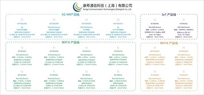 康希通信拥有全套GaAs、SOI、CMOS等射频芯片设计技术,专注于研发WIFI、5G 、IoT等各种射频前端集成电路,主要应用于无线接入WIFI、手机WIFI、5G及物联网等领域。其团队一直致力于高线性射频前端芯片的研发设计,拥有业界少有的高线性纯CMOS射频前端技术,并开创性地采用DeltaRF架构,设计出高性能WLAN/5G微基站射频前端芯片。