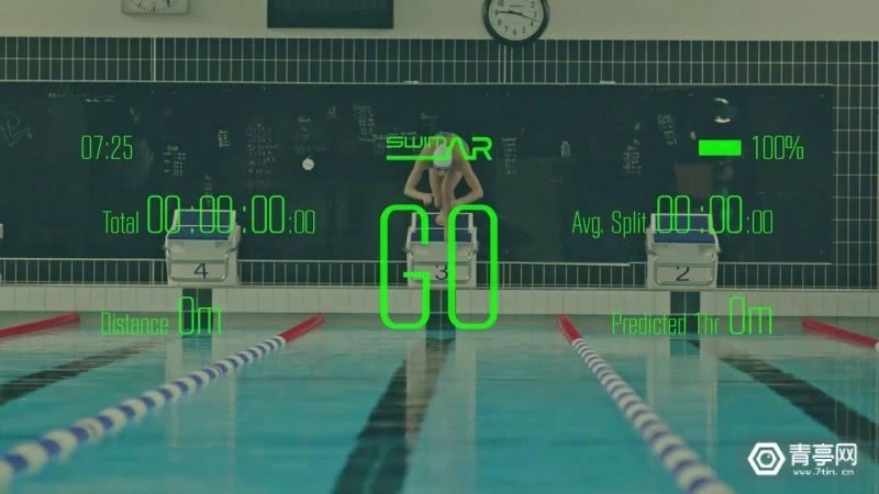 据了解,SwimAR由伦敦Imaginationa Factory公司开发,它是一块可适配多款泳镜的全息投影模块,其采用索尼SmartEyeglass智能眼镜的显示技术,作用是可以让游泳运动员在训练过程中能够在眼前看到时间、目标速度、距离等实时训练数据,特点是轻便、灵活且符合流体力学。