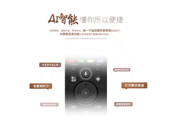 在智能领域,索尼U8G具备AI智能语音功能,带来更快、更智能的交互体验。诸如搜索、音量调节、询问天气、APP操控等,都能通过索尼电视的遥控器一键完成。