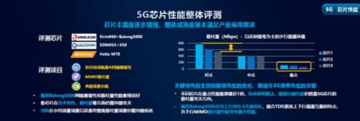 本次中国移动发布的5G专题评测报告分为5G芯片评测和5G终端评测两大部分,选取三款主流5G芯片、六款5G手机、三款5G CPE开展评测。测试内容方面,不但包含芯片协议栈完善度、芯片MIMO吞吐量、终端上行接入能力、终端下行通信性能等通信深度测试,还加入了芯片能耗表现、手机续航性能、手机发热情况等体验客观评估内容。