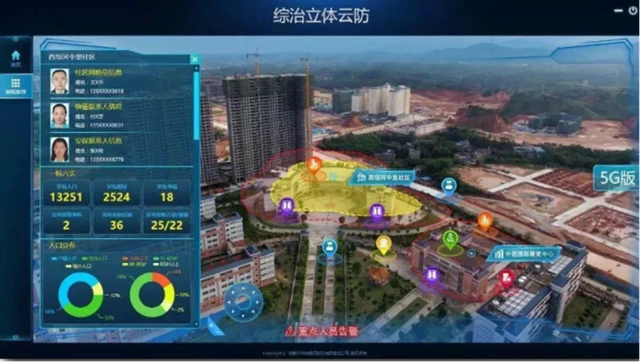高新兴执行副总裁付洪涛介绍,高新兴综治立体云防以高点俯瞰实景视频为底图,联动高清视频监控系统、人脸卡口系统、车辆卡口系统、移动执法系统、无人机系统、巡逻机器人、视频门禁系统等,通过“指挥”和“服务”两条主线,融合公安治安条线、网格管理条线的力量,为视频辖区内的街道、房屋、商业区、学校以及重点建筑物提供全方位的巡查、布控、预警、指挥和研判服务。