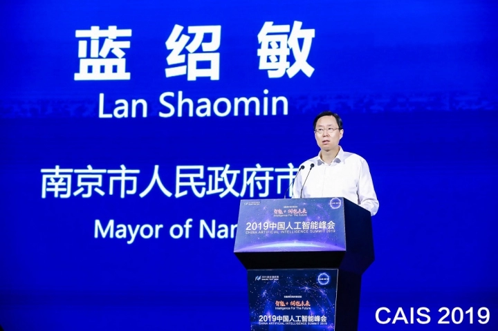 南京市人民政府市长蓝绍敏上台致辞,他表示AI是南京建设创新名城重点关注的细分领域,而南京有产业的基础、应用的基础和人才的基础,我们要充分发挥南京的优势,加快南京的产业的发展。
