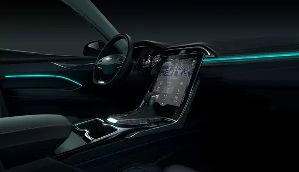 车身侧面,一条凸起的腰线从反光镜延伸到尾灯处,在提升视觉高度的同时使整车更显轻盈,车尾侧采用了当下比较流行的贯穿式尾灯设计。内饰部分采用了全新的家族化设计语言, 黑红拼色内饰以及大尺寸双屏设计,符合当下消费者的用车需求。