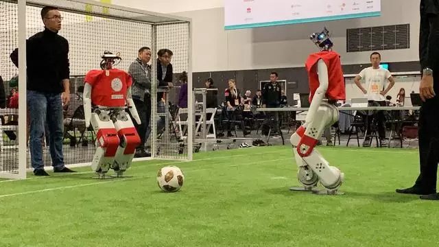 RoboCup创办于1997年,至今已成功举办了23届,主要检验和研究机器人视觉识别、自主定位、双足行走的步态动态规划、身体平衡抗干扰能力、弹跳能力等多项前沿核心技术。