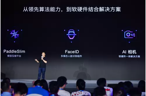 会上,吴中勤着重通过飞桨-PaddleSlim,FaceID多模态人脸识别组件和AI相机3大技术和应用,展示了视觉语义化技术在软硬件结合方面的全新升级。