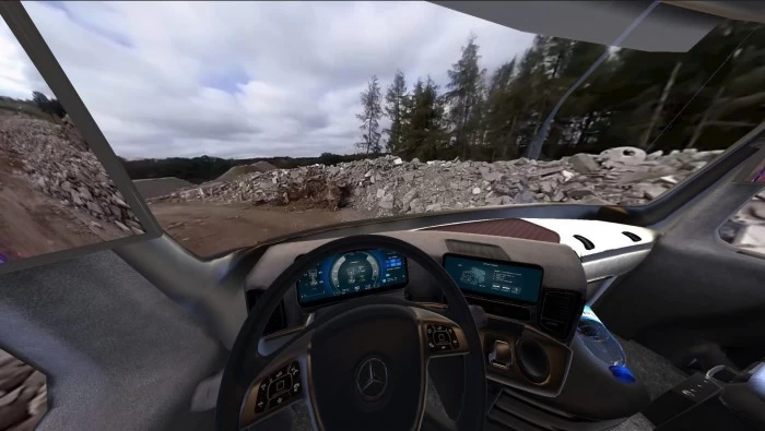 测试中,驾驶者将戴上VR头套用于获取卡车驾驶舱的3D模型以及各种驾驶情况。另外,驾驶者将得到一个跟真实多功能方向盘形状一样的 配件 。参加测试的人需要在用户友好的菜单导航屏幕和应用组合中进行输入。