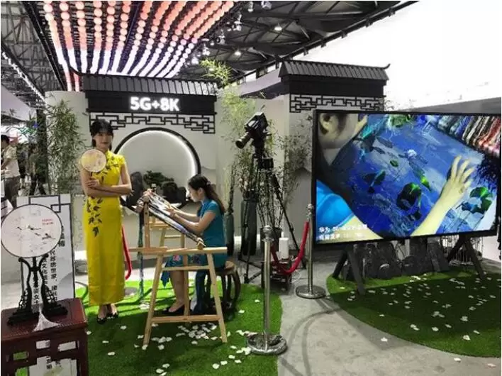 在中央广播电视总台2019年春晚期间,三大运营商通过5G成功实现了深圳、长春分会场4K超高清电视信号通过5G网络实时回传。在春晚分会场,4K摄像机拍摄的超高清图像通过编解码器进入华为的5G CPE,40M码率的4K超高清图像通过5G网络稳定上传,充分体现了5G的大带宽特性。今年2月28日,中央广播电视总台5G新媒体平台成功实现4K超高清视频集成制作。全国16路4K超高清视频信号,通过5G网络实时回传至总台5G媒体应用实验室,标志着5G已经可以满足集成多路4K超高清信号和多类型节目制作形态的传输条件。MWC2019期间,华为公司更是展示了“5G+8K”高清直播功能,将中国千年传统刺绣工艺清晰的通过8K视频在大屏幕上显示出来,每一针每一线都无比的清晰,实时传输带宽稳定在180Mbps左右。5G进一步丰富了新媒体直播方式和手段,提高效率的同时又使传统内容焕发新的活力。
