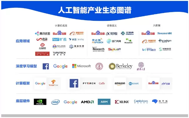 各国中型企业和初创企业往往通过自身强大且灵活的技术创新能力和垂直场景的应用寻求突破,更容易在资本的助力下迅速发展。但近年,中国在基础算法研究上的投入力度不断增加,理论端高水平AI论文的产出总量已超过美国,世界顶级刊物中也开始出现更多华人的面孔。国内,百度、阿里、腾讯等互联网巨头企业也开始加大投入,百度大脑的推出,从芯片到深度学习框架,形成了技术、平台和框架的AI全栈技术布局。