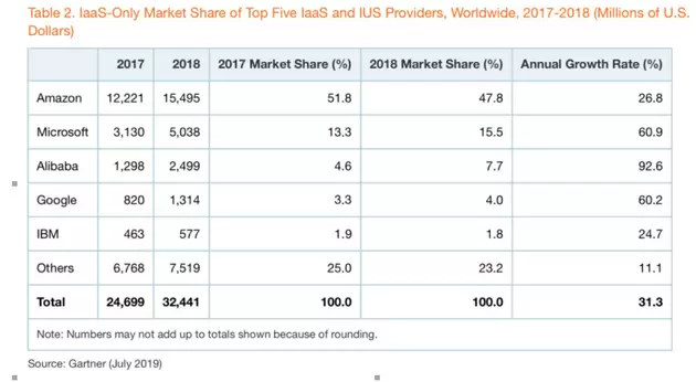Gartner报告:AWS市场份额下跌4% 阿里云增长近一倍