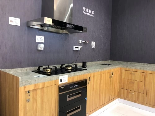 包括智能猛火燃气灶、智能物联吸油烟机、智能消毒柜、智能电蒸烤一体机等在内的一系列厨电产品构成了“艾特超人e家智能厨电系统解决方案”。