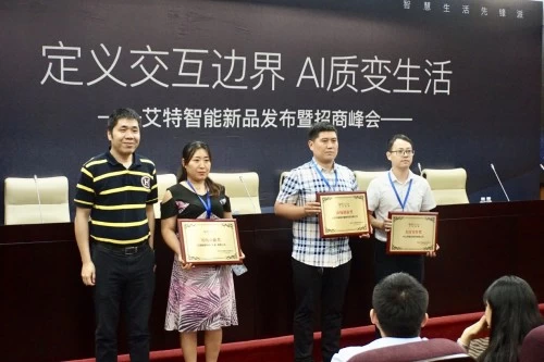 在本次新品发布会上,艾特智能也对优秀的城市合伙人表彰,颁出了三大奖项,其中:云端智慧科技(天津)有限公司获“突出贡献奖”、山东中盛国华智能科技有限公司获“市场创新奖”、中山市智业科技有限公司获“杰出零售奖”。