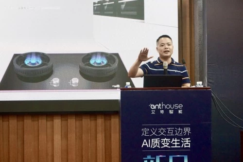 此次发布会上,艾特智能也发布了全新的智能厨房解决方案,此方案由艾特联合超人厨电联合打造。新品发布会上,超人厨卫营销总监罗健也对相关产品进行详细阐述。