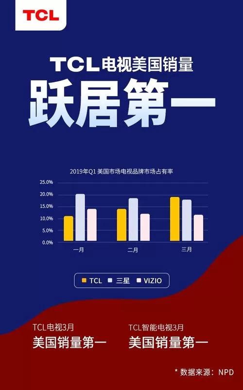 但最近,TCL公布了海外市场的销量,2019年1-5月,海外整体销量同比提升43.1%,北美销量同比提升96.8%,美国市场尤为出众,TCL电视销量同比涨幅近乎翻倍,在今年3月份更是以不俗的销量超过三星电视单月销量,跃居全美第一,这与TCL不断加大研发投入,加快印刷显示、量子点和柔性AMOLED等新一代显示技术研发有着直接的关系。
