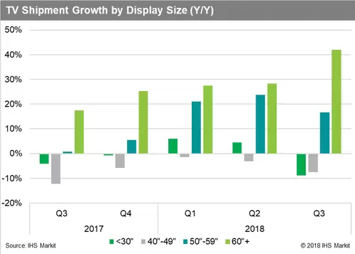 市场的种种迹象表明,技术的革新才能带来销量提升,据市场研究公司IHS Markit报告,2015年UHD(4K)产品在60英寸或更大尺寸电视面板市场的份额为60%,2016年增长到85%,2017年增长到96%。