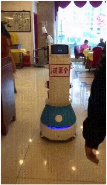在全聚德烤鸭餐厅,两台“花生”送餐机器人密切配合,给餐厅带来了一股别样的科技体验。后厨人员只需将菜品放置在机器人托盘上,并选择配送的桌号,“花生”就将出发为顾客进行配送。